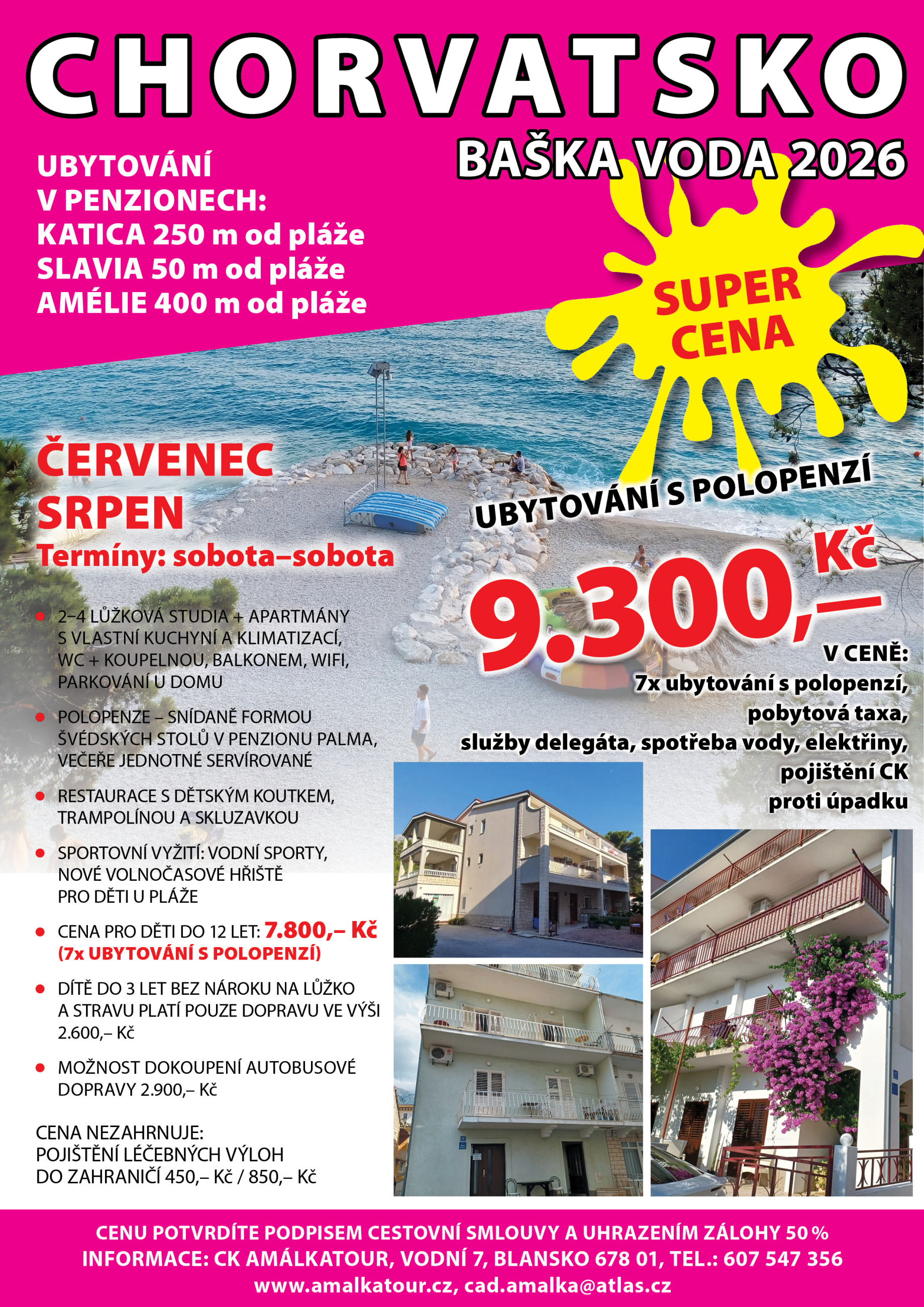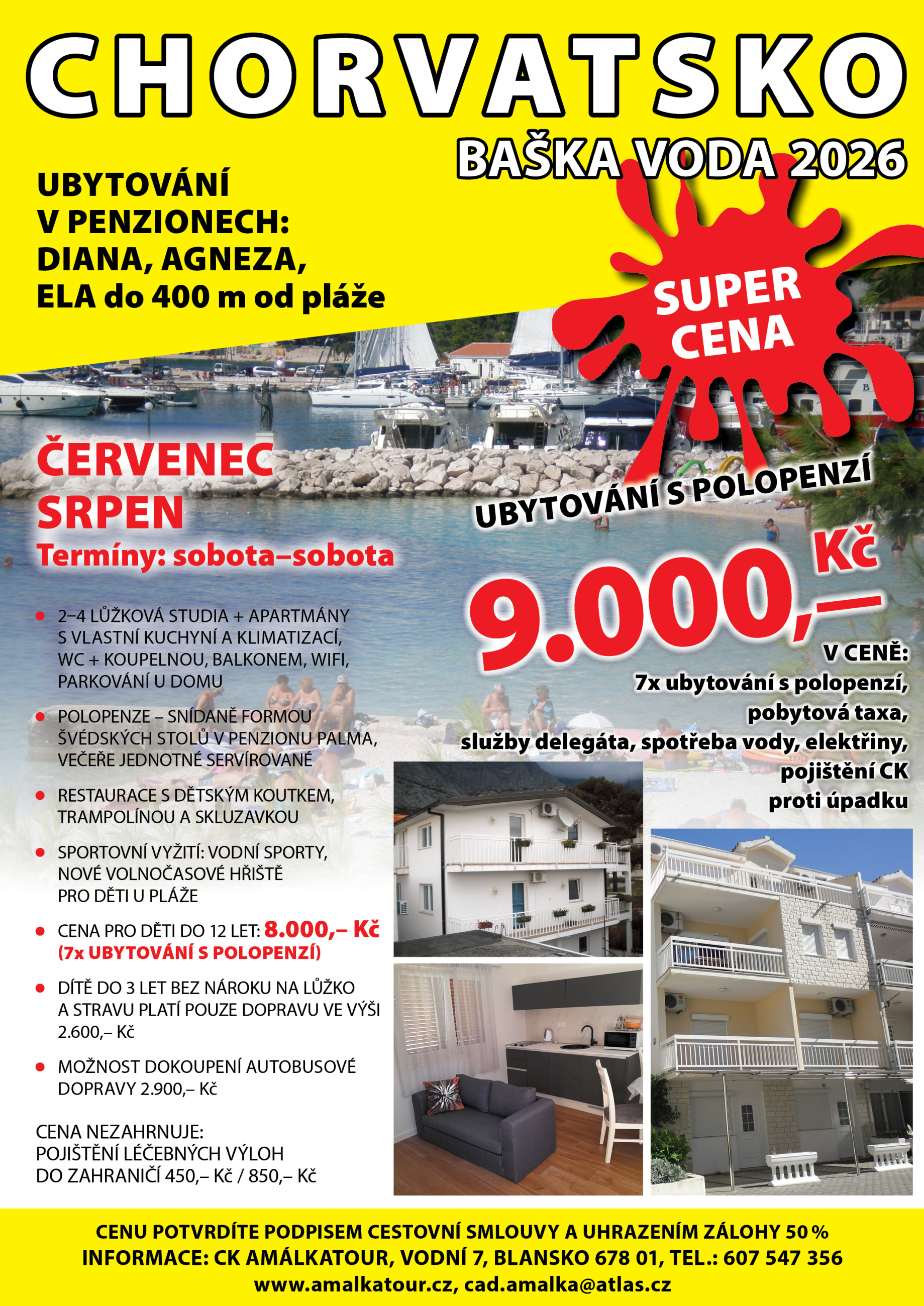 Dovolená přímo na míru čeká u nás a váže se k ní spousta výhod, jako jsou nízké rezervační zálohy, akční ceny pro děti, změna parametrů vašeho zájezdu zdarma a mnoho dalších bonusů, např. parkovné zdarma. Vydejte se tedy za teplem a sluncem k moři za ty nejlepší ceny a rezervujte si Vaši příští letní dovolenou včas.
